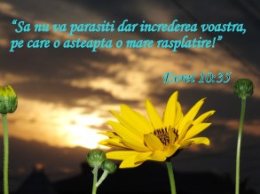 „Să nu vă părăsiţi, deci, încrederea voastră pe care o aşteaptă o mare răsplătire! Căci aveţi nevoie de răbdare, ca, după ce aţi împlinit voia lui Dumnezeu, să puteţi căpăta ce v-a fost făgăduit” (Evrei 10:35-36).