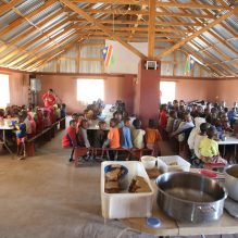 Școala Kalahari New Hope are o cantină unde mănâncă zilnic aproximativ 250 de persoane. Mesele sunt servite dimineața și după-masa, iar pentru o parte dintre oameni și seara. Mâncarea este preagătită în bucătăria cantinei de către Cornelia Pater, aceasta primind ajutor din partea localnicelor Estera, Maria, Lucia, Beata și Ana. O parte din produsele folosite în prepararea mâncării provin din grădina bazei, restul produselor fiind cumpărate din Grootfontein, cel mai apropiat oraș, situat la 160 de km. Spre încântarea și deliciul lor, localnicele au fost învățate să prepare diverse