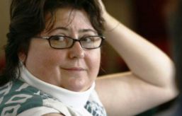 Asta nu a împiedicat-o să reprezinte grafic, pe scenă, acțiunea denumită de acele patru litere, în abjecta ei piesă „Evangheliștii” (blasfemia îi privea pe Hristos și pe o amantă scornită de marea dramaturgă și gânditoare politică).