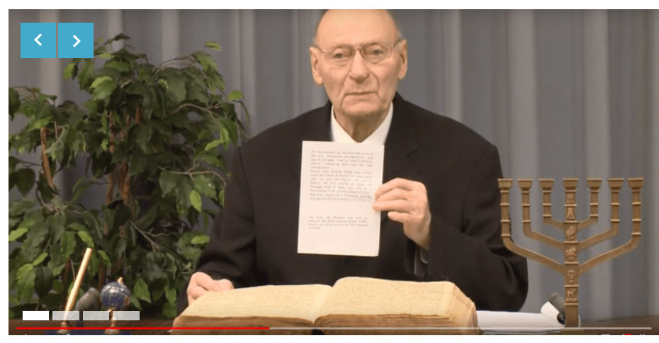 | Ewald Frank incercand atat de insistent sa se apere, si sa dovedeasca ca lui Branham i sa spus ca “mesajul tau va premerge a doua Venire” nu ca “tu vei premerge“, ca si cum o intamplare -care nu a avut loc niciodata- ar fi esentiala pentru mantuirea cuiva. (Foto preluata de pe http://ultimachemare.ro/ ) |