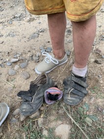 Dar ce m-a uimit cel mai tare a fost faptul că după ce acest copilaș a primit acești teneși a mai primit și o pereche de bocanci, însă el a fugit spre prietenii lui care nu primise nimic, i-a lăsat jos să-i ia altcineva după care a fugit țopăine. El nu a descoperit încă faptul că poți avea două perechi, chiar trei, patru sau zece perechi de încălțăminte. El știe atât că o pereche îți ajunge, că aceeași pantofi îi porți pe vânt, pe ploaie sau pe arșiță chiar dacă nu sunt de firmă sau chiar dacă nu au beculețe în talpă. Iar după ce se rup îi mai porți câteva luni.