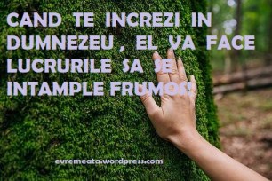 Când te increzi in Dumnezeu, El va face lucrurile să se întâmple frumos din perspectiva Lui iar ție îți va plăcea poate nu la început, dar la final vei vedea ce mare este bunătatea si credinciosia Lui față de cei ce se încred în Voia Lui.