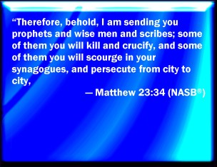 34. De aceea, iata, va trimit proroci, intelepti si carturari. Pe unii din ei ii veti omori si rastigni, pe altii ii veti bate in sinagogile voastre si-i veti prigoni din cetate in cetate; (Matei 23: 34, 35)