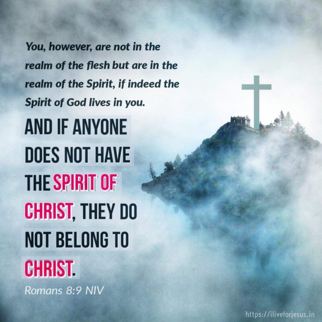 Voi însă nu mai sunteți pământești, ci duhovnicești, dacă Duhul lui Dumnezeu locuiește în adevăr în voi. Dacă n-are cineva Duhul lui Hristos, nu este al Lui. [Romani 8:9]