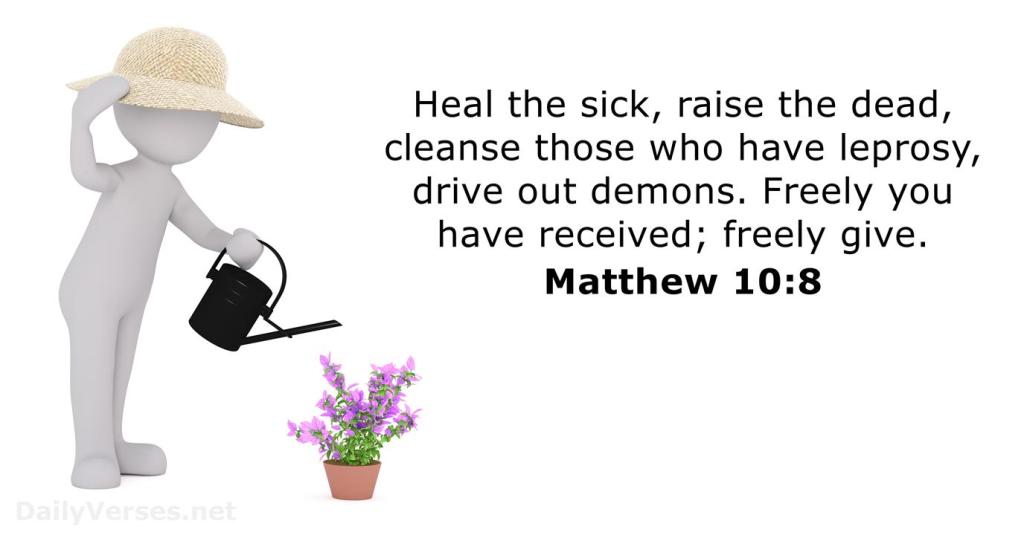 “Vindecați pe bolnavi, înviați pe morți, curațați pe leproși, scoateți afară dracii. Fără plată ați primit, fără plată să dați.” (Mat.10:8)