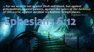 Căci noi n-avem de luptat împotriva cărnii şi sângelui, ci împotriva căpeteniilor, împotriva domniilor, împotriva stăpânitorilor întunericului acestui veac, împotriva duhurilor răutăţii care sunt în locurile cereşti. (Efeseni 6:12)