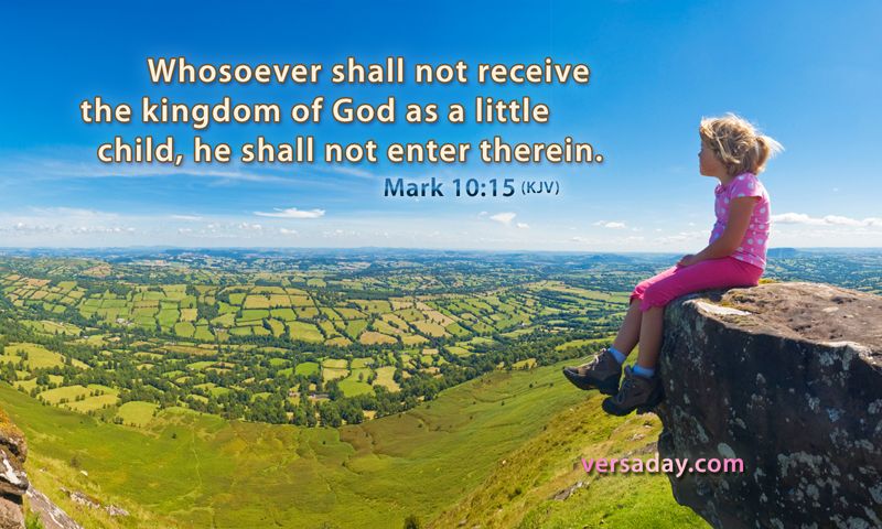 Marcu 10:15 – Adevărat vă spun că oricine nu va primi Împărăția lui Dumnezeu ca un copil mic, nu va intra în ea.