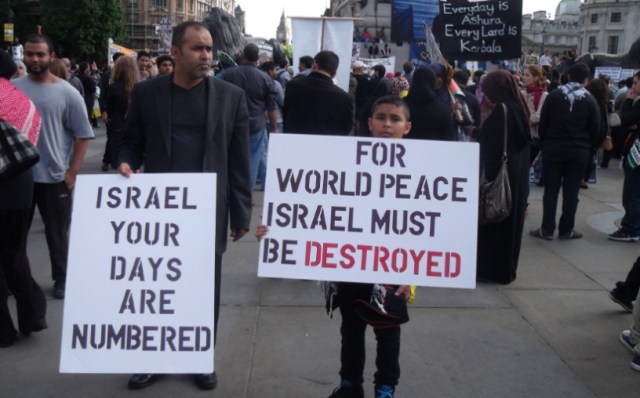 Musulmani afișând pancarte anti-israeliene. Pe cel din stânga este scris: ”Israel, zilele îți sunt numărate.” Pe cel din dreapta este scris: ”Pentru pacea mondială, Israelul trebuie distrus.”Într-unul din articolele precedente în care am discutat despre islam și anticristul islamic, am amintit în unele momente de ura profundă a islamului și adepților săi față de evrei. În articolul de față, vă voi împărtăși mai multe detalii despre acest subiect. Mare parte din informațiile pe care le voi rezuma în articolul de față sunt preluate din cartea ”Anticristul islamic” scrisă de către Joel Richardson a cărei traducere în limba română a apărut în anul 2017 la editura Soli Deo Gloria. Acestora le voi adăuga și anumite comentarii proprii acolo unde voi considera că este necesar. Continue reading “Ura străveche a islamului față de evrei”