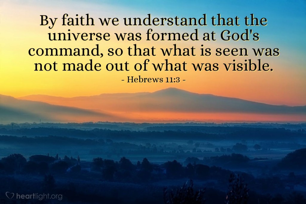 Prin credință pricepem că lumea a fost făcută prin Cuvântul lui Dumnezeu, așa că tot ce se vede n-a fost făcut din lucruri care se văd.” (Evr.11:3)